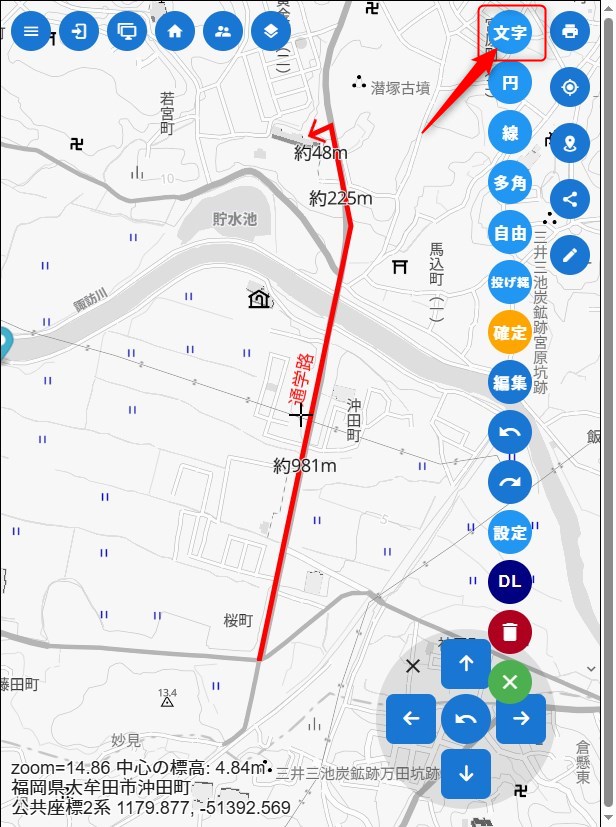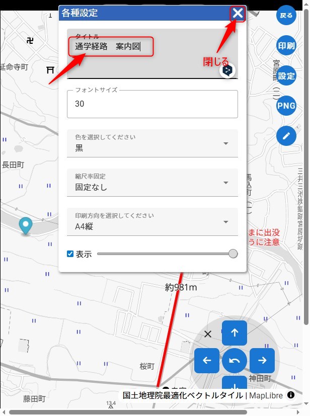 距離を表示したり、文字を入れたり