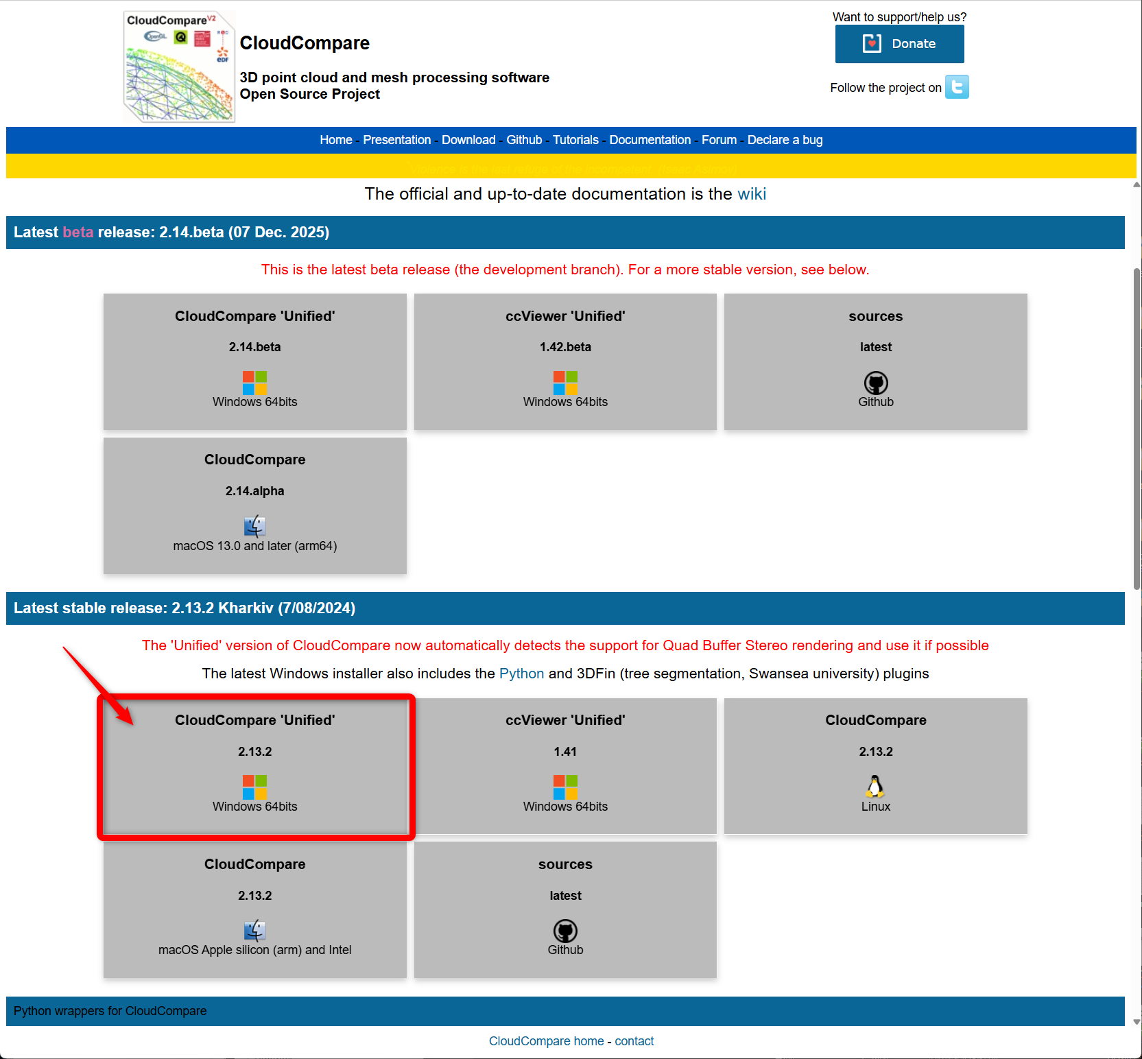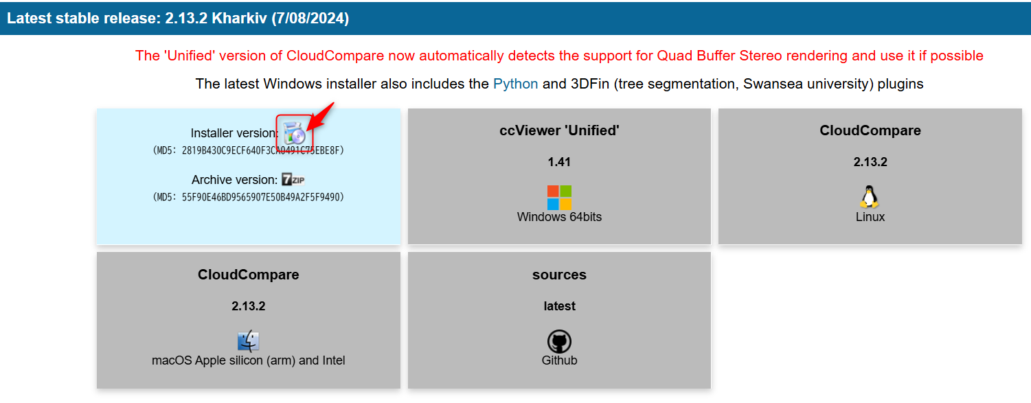 CloudCompareのダウンロード&インストール