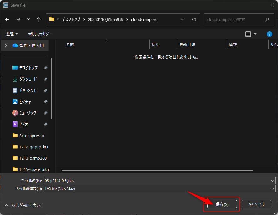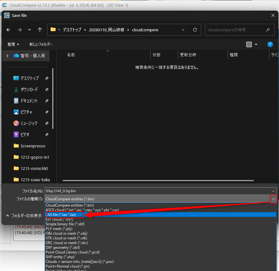 ファイルの種類でLAS fileを選ぶ