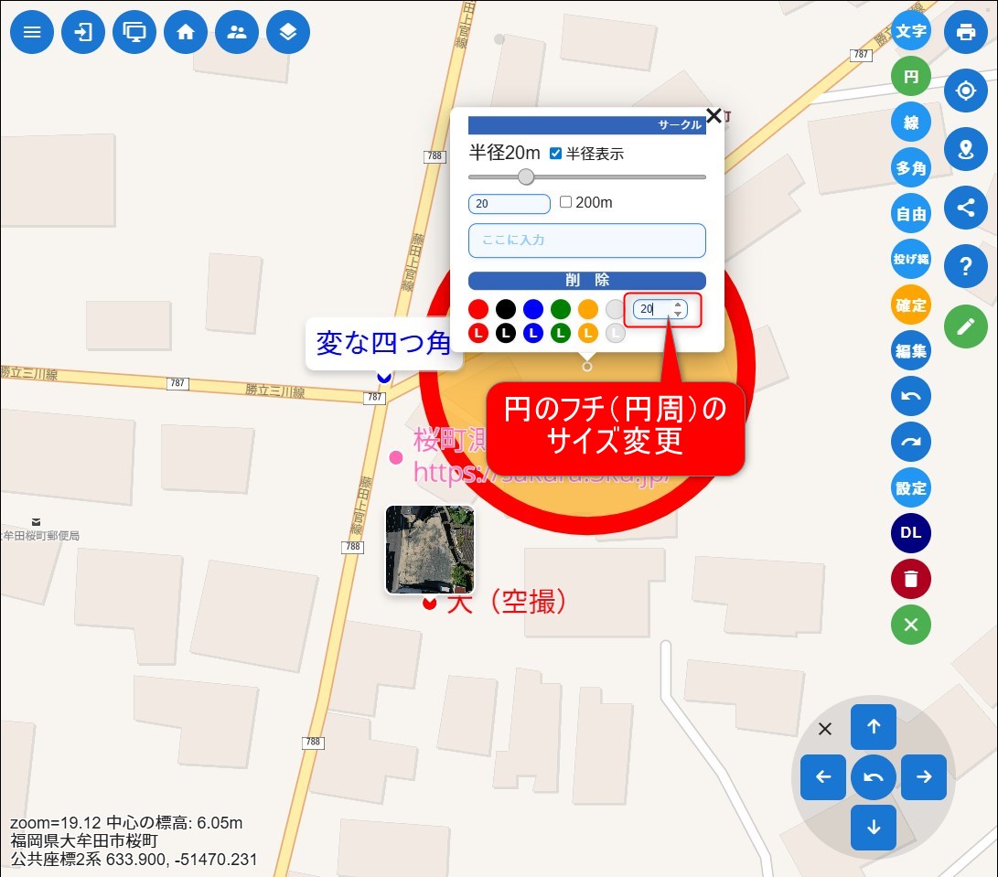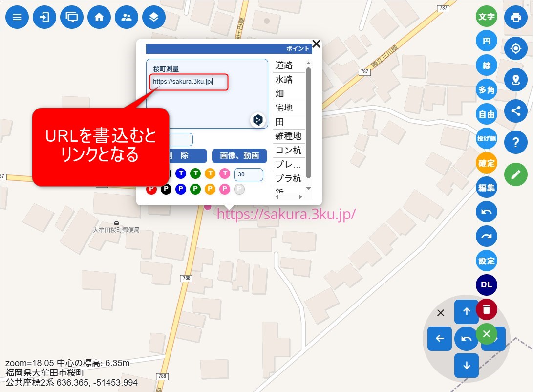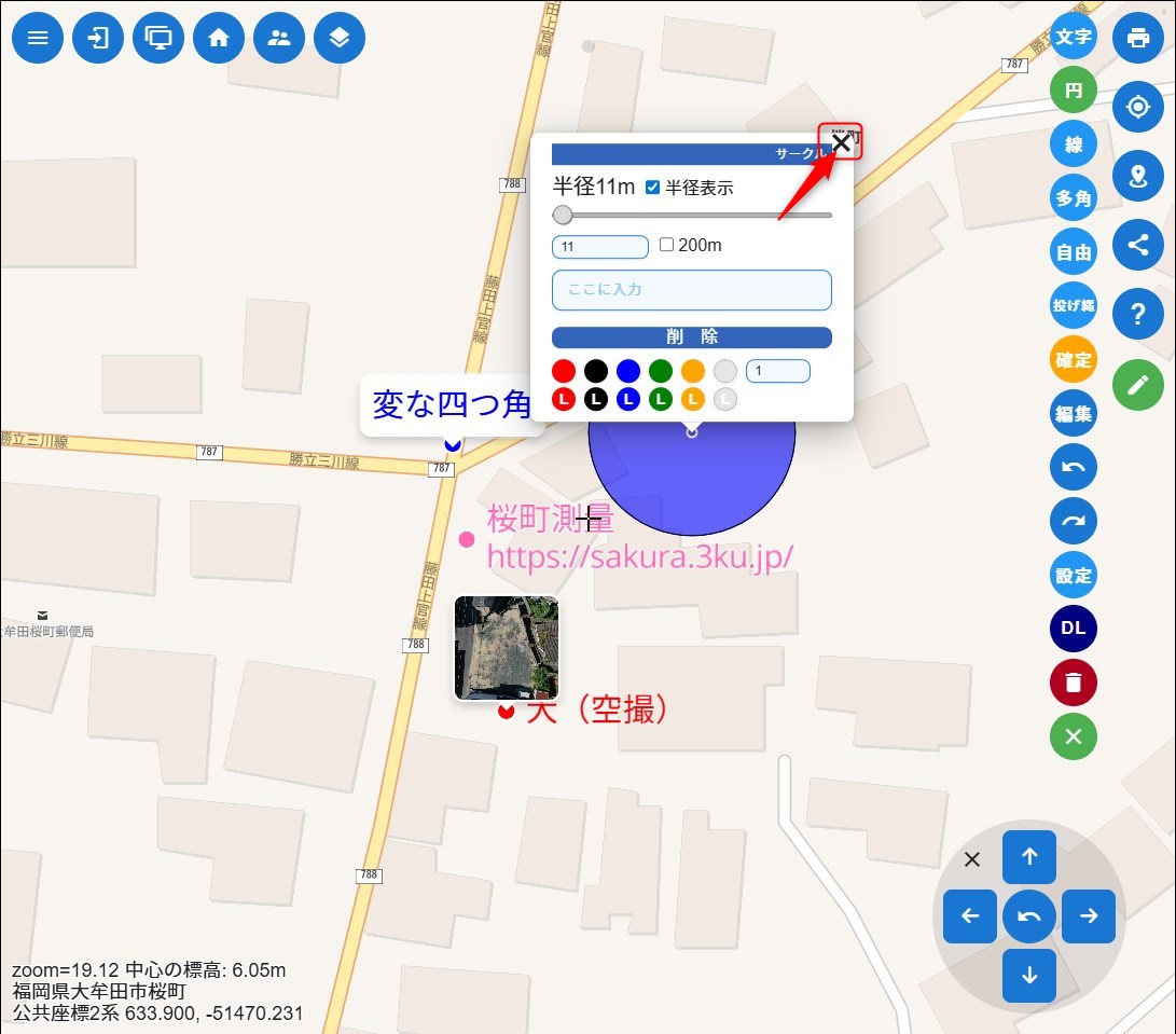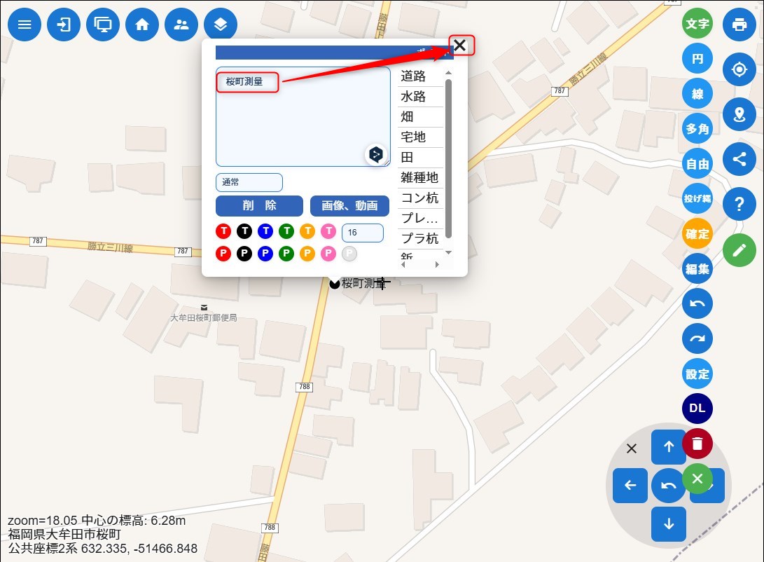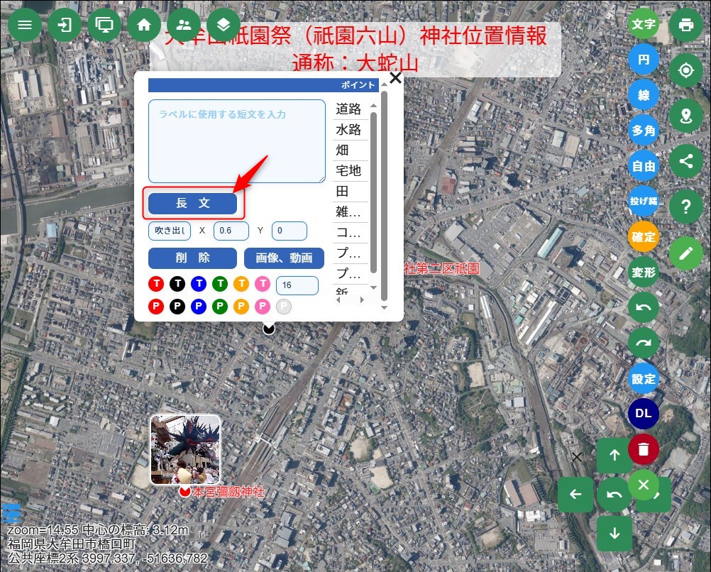 ※ズームされていない時はポイントだけ表示されます。