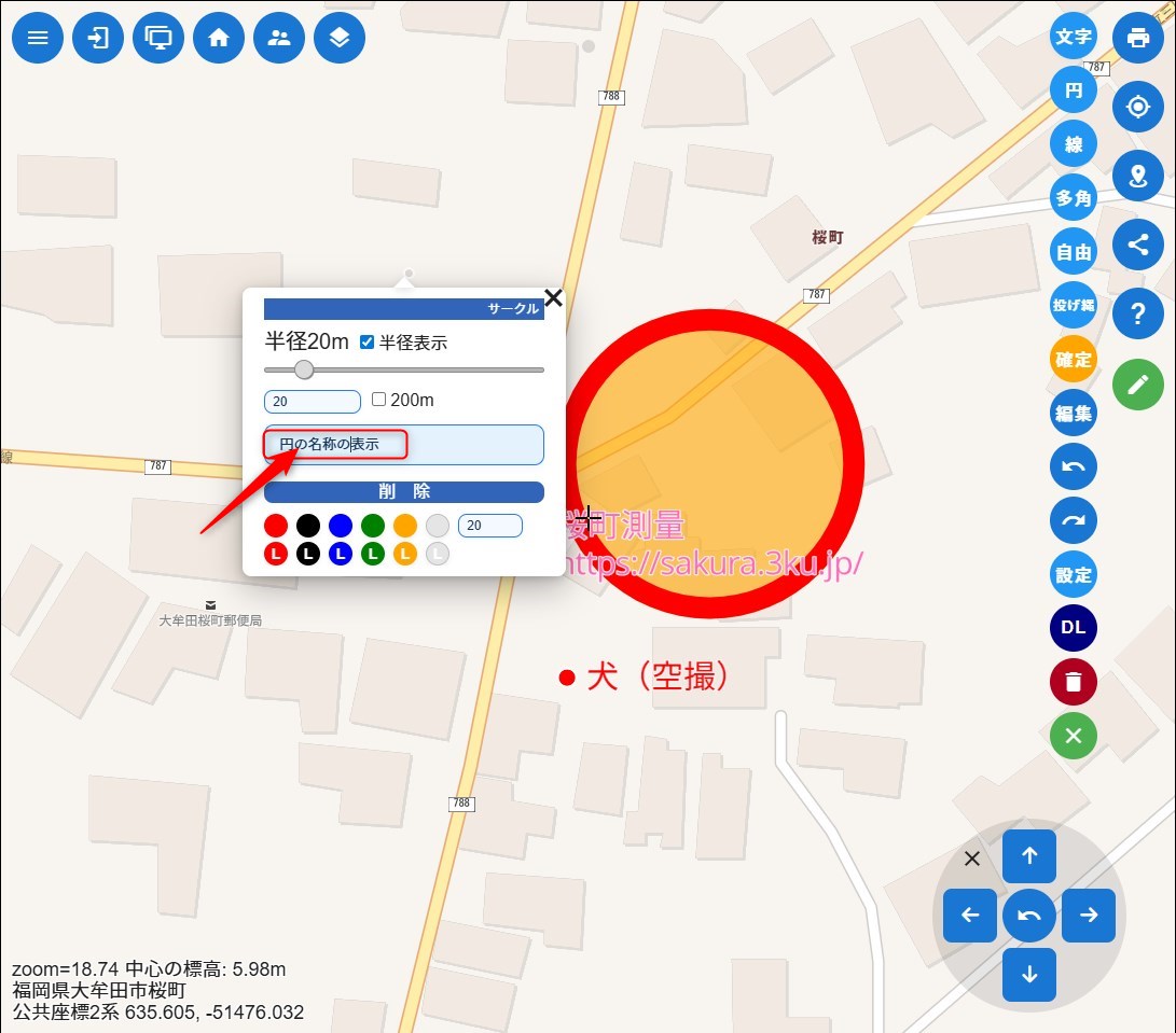 円の名称を表示する