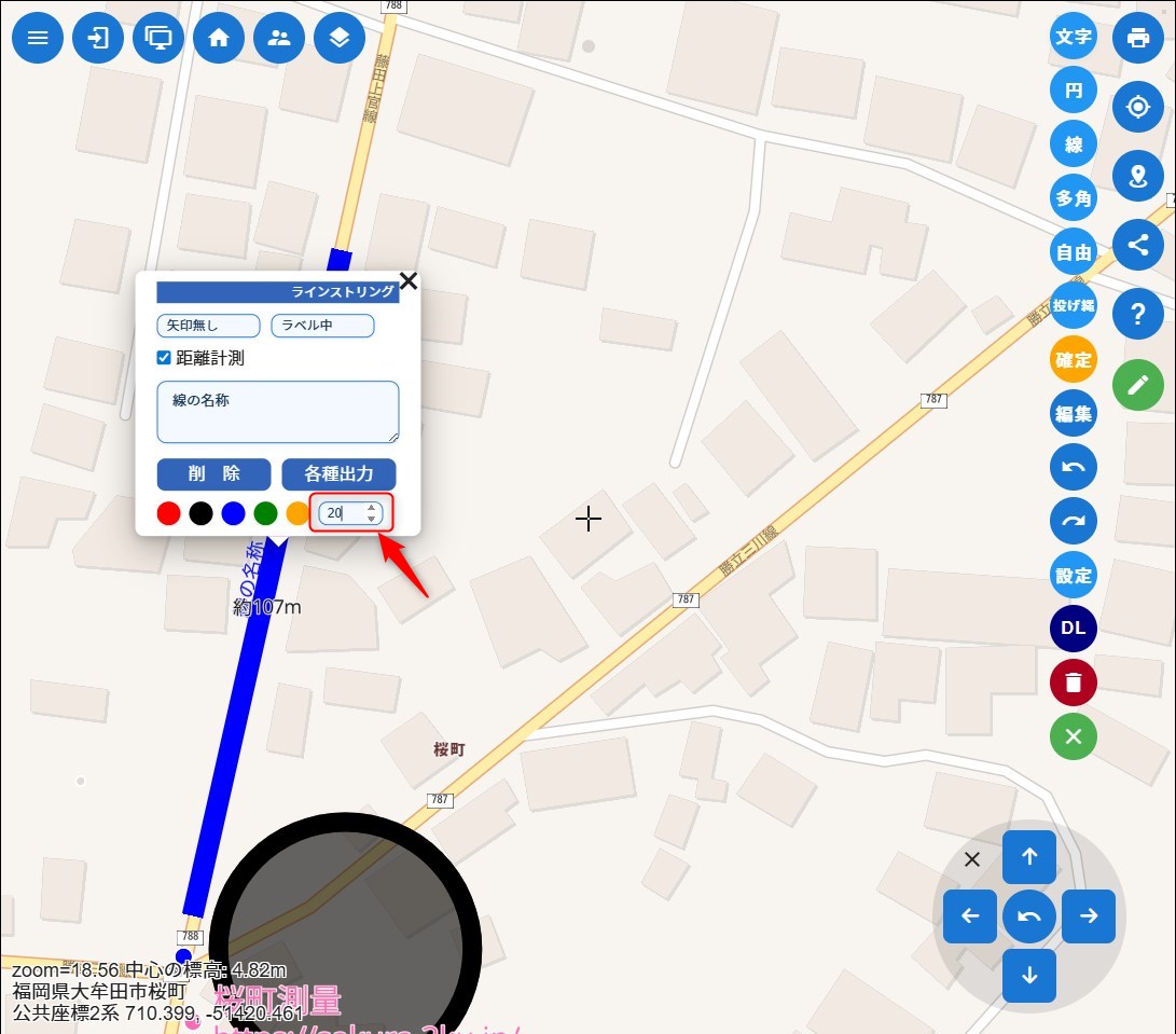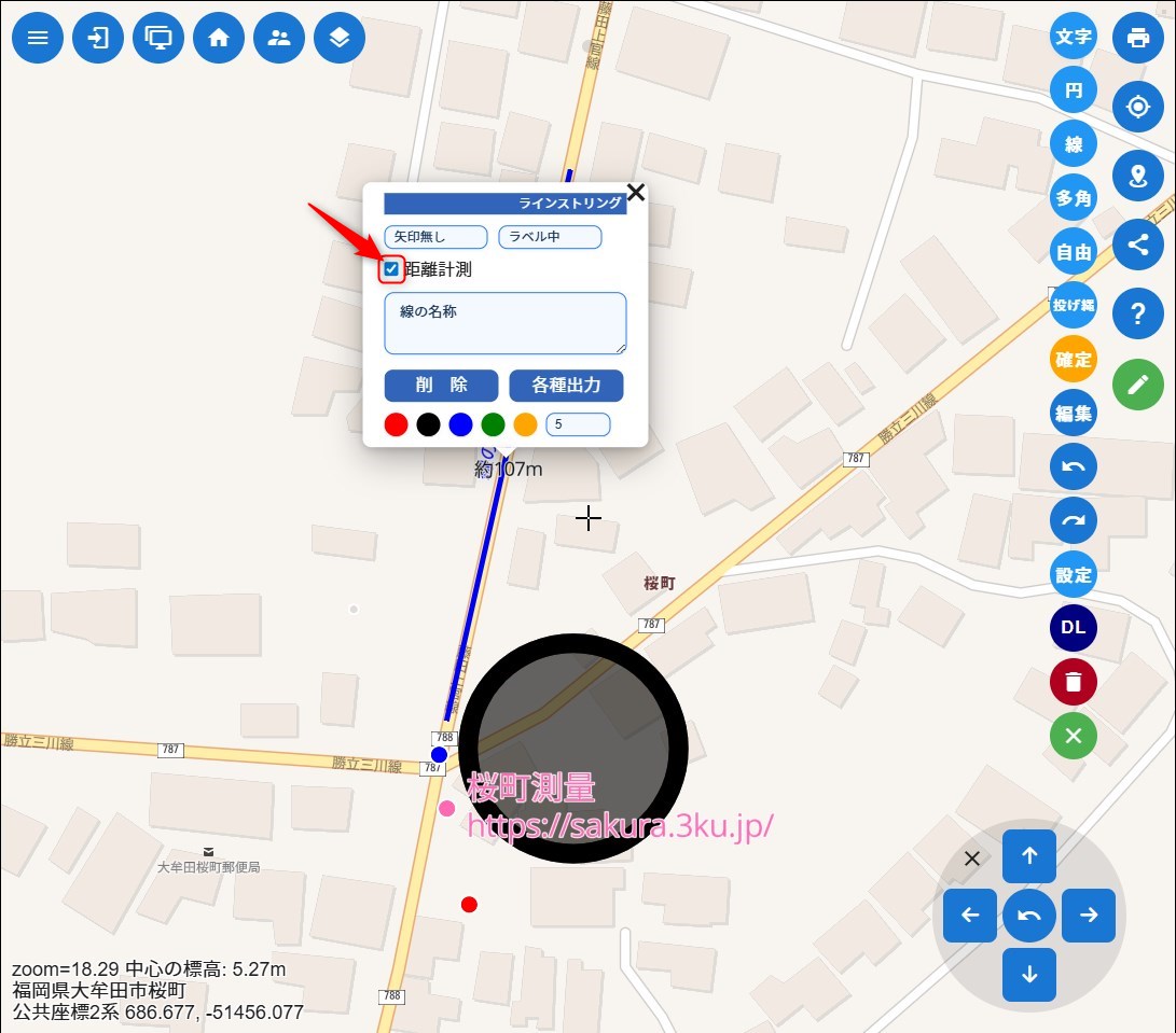 線の距離を表示