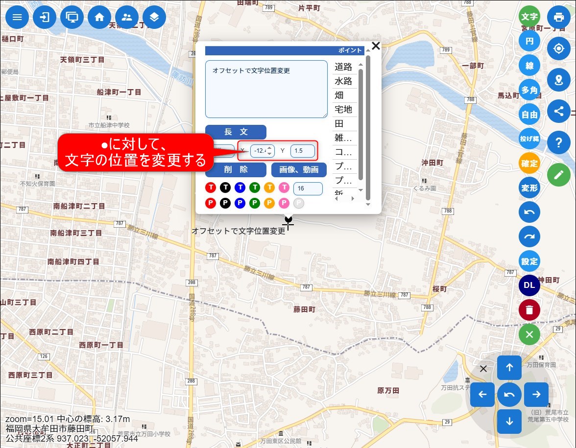 文字の位置を変更する(オフセット)