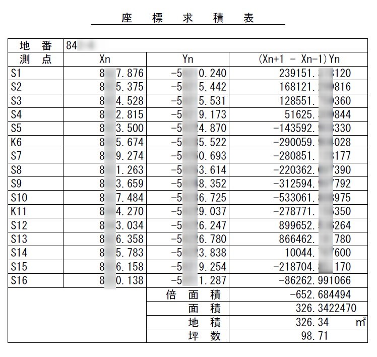 地積測量図にこんな求積表がついていた
