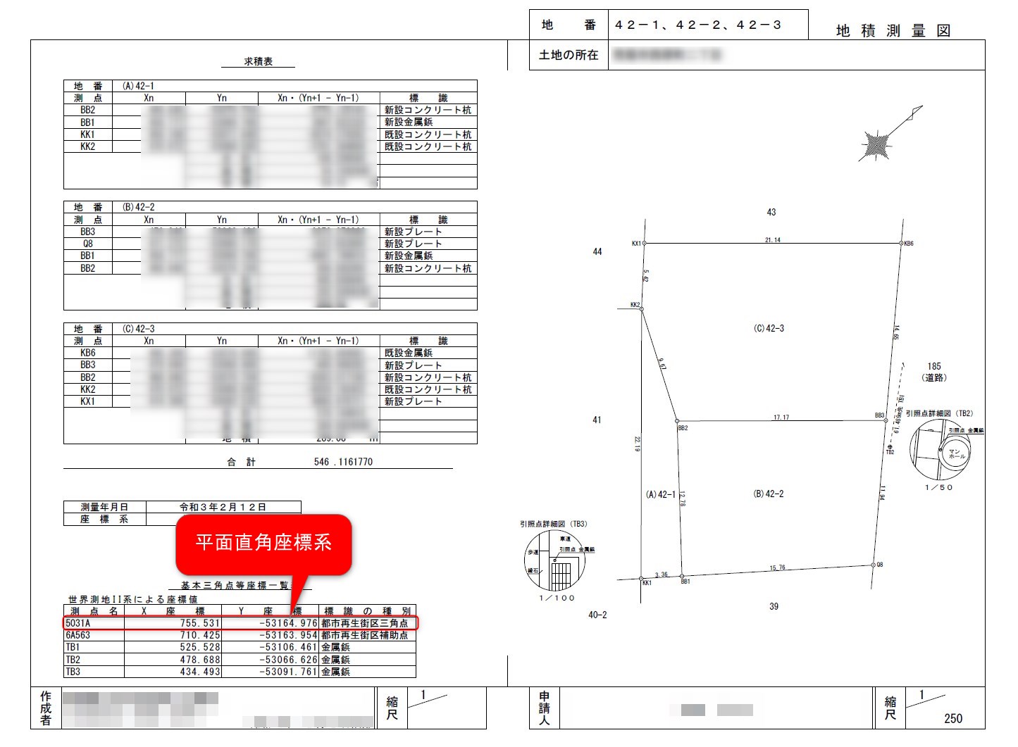 地積測量図で座標値を拾う