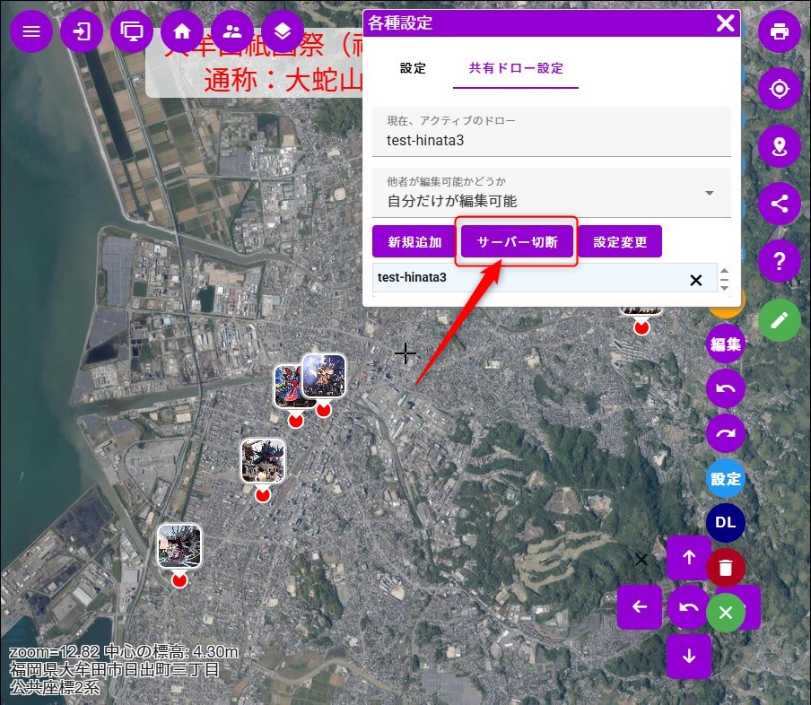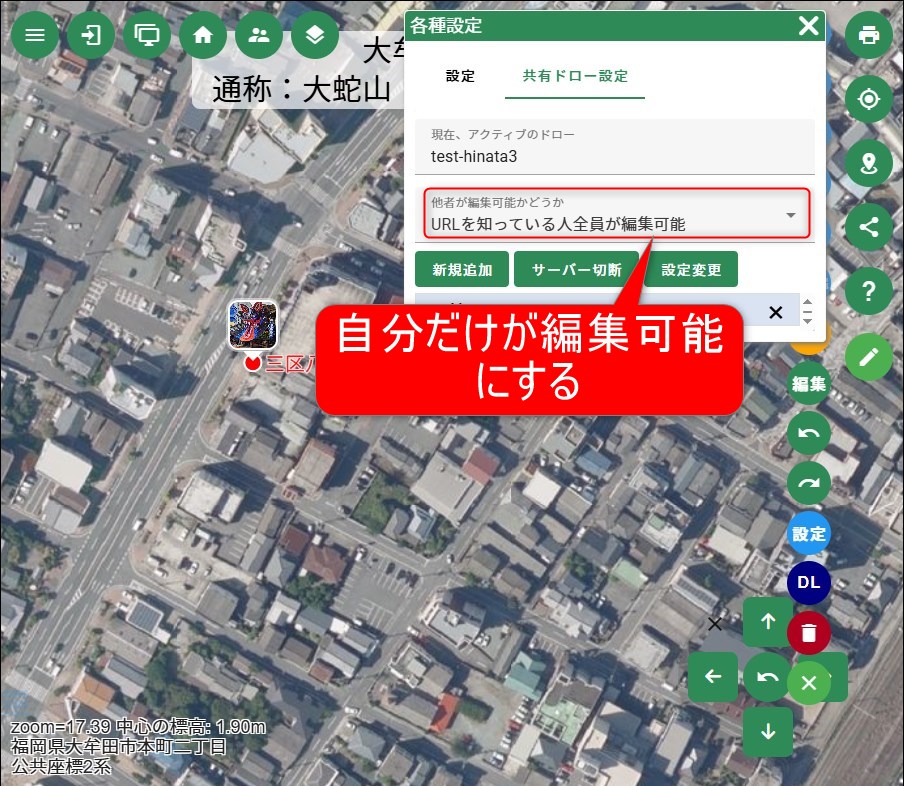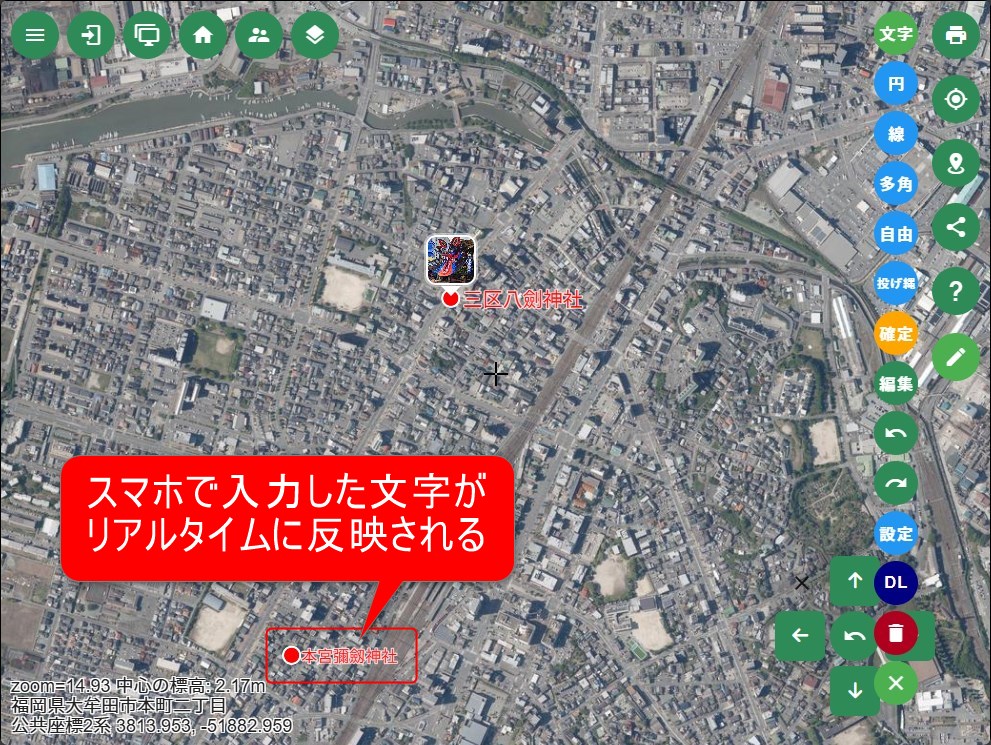 みんながおのおの文字や画像・動画までも登録すれば、どこを調査したかっていう情報が、リアルタイムでみんなと共有出来るったい