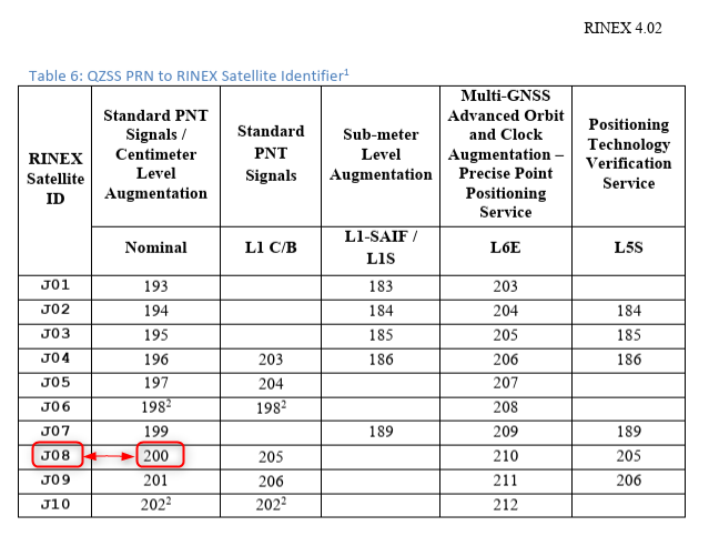 QZS06のPRNは200とかだから、RINEXの表ではPRN200はJ08