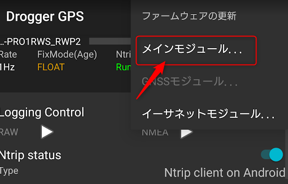 Droggerに接続して【︙】からファームウェアを更新する