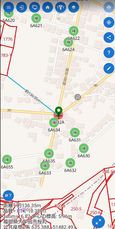 open-hinata3のGISレイヤとの組合わせで、基準点や境界ポイントを、座標入力することなくセンチメートルで探索出来ます。